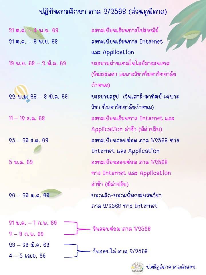ขออนุเคราะห์มหาวิทยาลัยรามคำแหงเลื่อนสอบไล่ 2 ปีการศึกษา 2568 ส่วนภูมิภาค