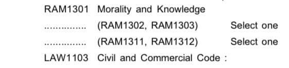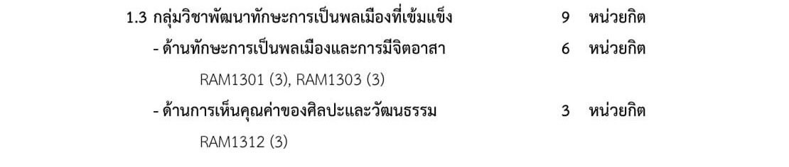 | รายละเอียด | ขออนุญาตสอบถามเกี่ยวกับการลงทะเบียนเรียนวิชา Ram 1312 ค่ะ คือไปเจอในเว็บไซต์ของมหาวิทยาลัยรามคำแหง แต่จำชื่อเว็บไซต์ไม่ได้ค่ะ หลักสูตรนิติศาสตร์ ในกลุ่มวิชาพัฒนาทักษะการเป็นพลเมืองที่เข้มแข็ง -ด้านการเห็นคุณค่าของศิลปวัฒนธรรม รหัสวิชา Ram1312 รูปภาพที่ไปเจอให้ลงทะเบียนในกระบวนวิชานี้ พอไปดูอีกเว็บไซต์นึง ให้เลือกระหว่าง Ram1311 และ Ram1312 ส่วนตัวได้ลงทะเบียนเรียน Ram1311 ไป ต้องลง Ram1312 เพิ่มอีกไหมคะ? ป.ล.แนบรูปให้ค่ะ |