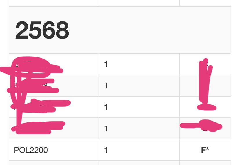 | รายละเอียด | ทำไมผลการเรียนทั้งหมดในวิชานี้ขึ้นF* คะแต่ไม่ได้ขาดสอบนะคะ |