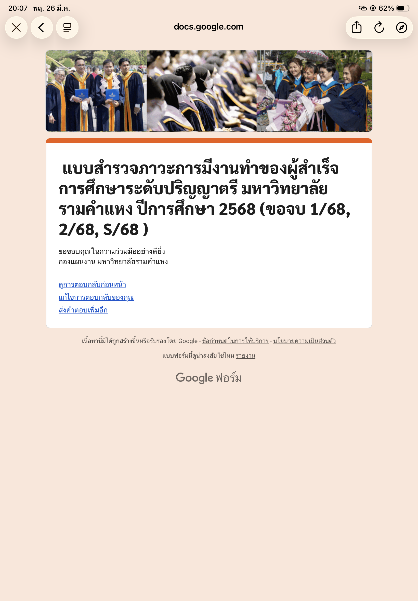 | รายละเอียด | แบบสอบถามภาวะการมีงานทำ เมื่อกรอกข้อมูลครบแล้วจะต้องปริ้นส่วนไหนบ้างเพื่อนำไปแจ้งจบการศึกษา -ปริ้นแค่ไฟล์รูปที่แนบ หรือต้องปริ้นข้อมูลทั้งหมดที่กรอกคะ |