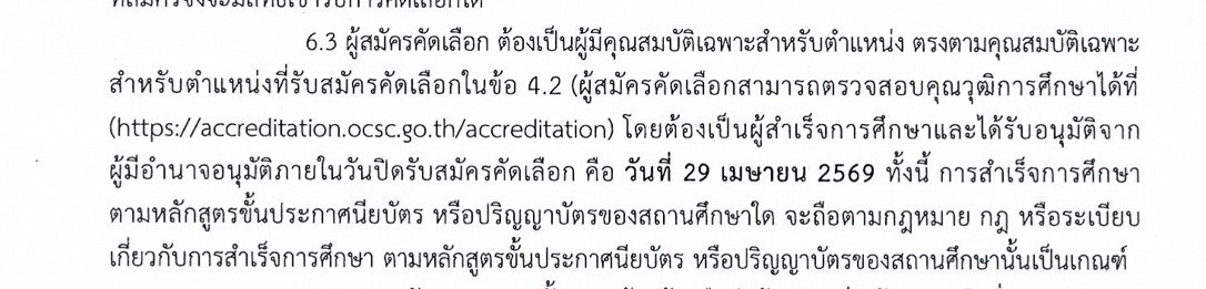 | รายละเอียด | หนูเรียนจบ 1/68 แจ้งจบแล้วค่ะ สถานะรอสภาอนุมัติ จึงอยากสอบถามว่า วันที่สภาอนุมัติ จะย้อนหลังไป ณ วันที่ จบ หรือเป็น วันปัจจุบัน ที่ประชุมสภาคะ เนื่องจากหนูอยากสมัครสอบราชการค่ะ ยังติดตรงคุณสมบัติ รายละเอียดตามไฟล์แนบค่ะ |